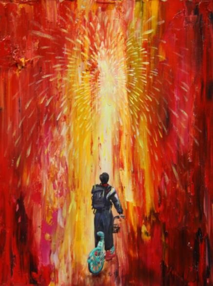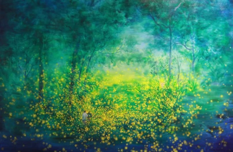 艺术家曾元伟——如同画境中的“捕风人”。他没有刻意去追求某种标新立异的“当代性”,而更关注真实的感受与属于当下的表达的冲动,在技法与情绪之间寻找某种巧妙的融合——一种根植于现实却朝着梦境疯长的浪漫狂想。