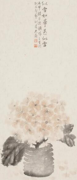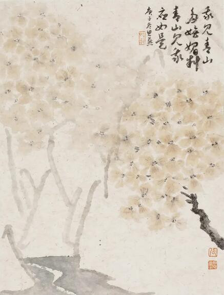 她擅书法,绘枝写花亦是书法用笔;中锋入笔,沉稳安定;设色以暖色为主,温和淡雅,闲静空灵。花卉柔而不弱,笔触松弛优雅,虚实相映。画风清新自然、慵懒而明媚。仿佛在某个午后,一位少女倚着木桌,看着阳光淡淡的洒在花瓣上。