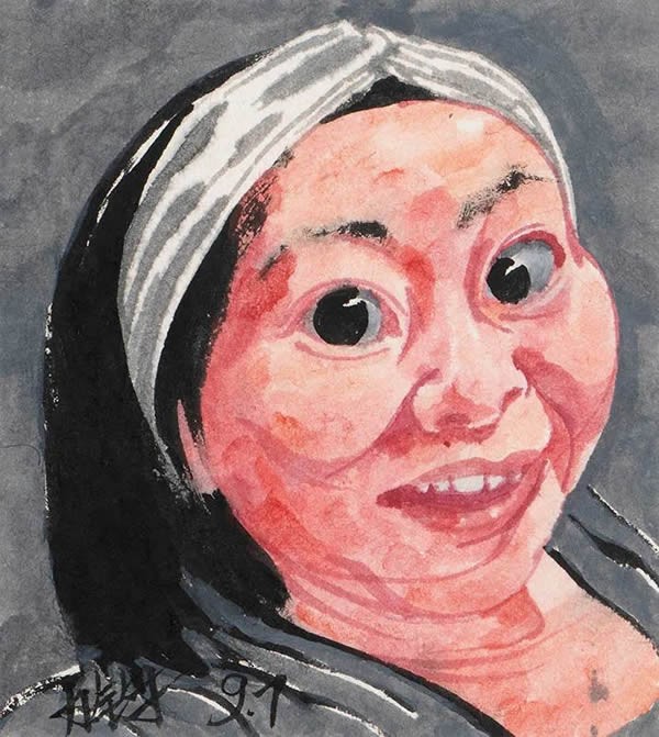 这一阵子为撰写本文,我将方力钧的大量水墨作品仔细看了一遍。感到他的水墨创作大致分为如下三种手法:第一是采用了纯粹的白描手法;第二是在白描的基础上染色;第三则是主要采用了泼墨或没骨的方法,而且是以水与墨为主。另外还有一些作品由于混用了以上各手法,所以很难加以分类。如果硬要加以归纳的话,我们似乎可以说,方力钧在进行水墨创作时,其实无非是在传统水墨中的白描与泼墨的方法之中寻求变化,具体办法就是在其中注入一定的西画元素。这也意味着,方力钧相关水墨手法的创造既要归功于他对特定价值、趣味与想象的追求,亦要归功于特定社会背景和历史背景对视觉形象所提出的全新要求。在这里,有一点必须说明,即我在上面的说法并不是想强调或暗示方力钧所创造的相关水墨手法就比传统水墨与写实水墨的规范要好,而是认为这一套手法更加适合于他,因为其使他能自由地追逐想象的思路,进而找到与心理状态相适应的画面效果。