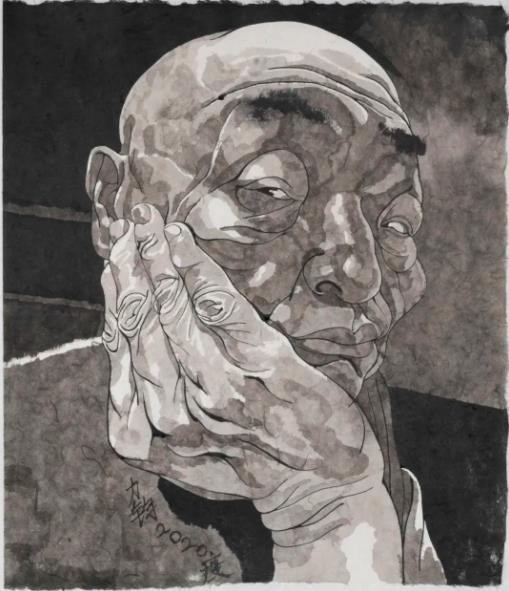 就在我努力思考这一问题时,方力钧与巴塞尔艺博会前主席霍珀于2016年6月10日来到了合美术馆。当晚在谈到艺术创作的问题时,他一句不经意的谈话猛然点醒了我。他这样说道:“创作者进入高潮时是不拘泥于形式的。”他还说:“我创作时常常是根据自己对生活与人生的体验去发现问题,然后再去讨论问题。所以,在创作中,我是绝对反对样式化的。”看来,这应该是人们理解方力钧水墨肖像创作的关键之处,而他的创作思路与绝大多数水墨艺术家也完全不可同日而语。