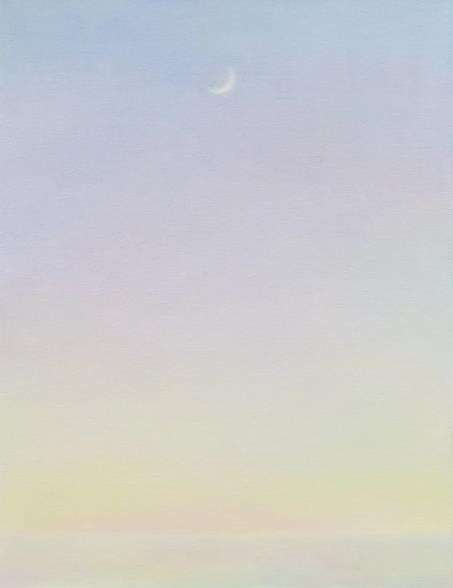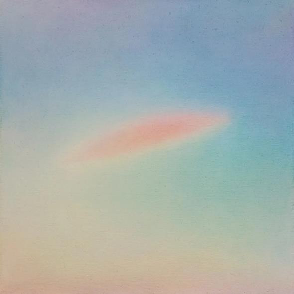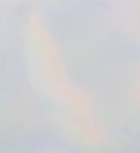 在郭淑玲的航海旅程中,绝对的安静占据了主要的时间和空间。然而大自然遥远悠扬的风声、涛声、动物鸣叫,却每时每刻都编织着若有若无的阵阵低语,光线与色彩也在平静的气氛下瞬息万变。因此,她倾力在作品中探索着Sotto Voce的境界。她的作品画面看似简单纯净,然而近看细节却能够发现,再微小的范围之内也有无数笔不同色彩的演变,互相融合、浑然天成。在她的上一个创作阶段,她的作品色彩普遍明度较高而饱和度较低,相似明度的颜料层层渲染,题材多为相对真实场景的局部,因为取景的放大和裁剪而显得抽象;到了这一创作阶段,她继续保持和磨炼着精准复杂的用色技法,此外常常在空旷的整体画面中安排一个半抽象提炼的物形。这一形象也许来自一爿残云、几根花草、或者一点光斑,为画面中低语的色彩提供了视觉重点并带来神秘氛围。一些作品延续了低饱和度的色谱,例如《低语-卢佩隆,多米尼加共和国》和《低语-圣皮埃尔,马提尼克岛-1》;这两幅作品的灵感来源于光点和被玻璃折射后分离出不同颜色的阳光,色彩范围控制精准,整体呈现淡淡的折射彩虹色,细看画面可观察到细致入微、似有还无的渐变。另一些作品的用色比从前更为大胆,例如《低语-长岛,巴哈马》、《低语-埃克苏马,巴哈马》等作品,用色相对明艳,第一眼便十分引人注意。多样的色彩选择大大增加了控制和渲染的难度,但从最终完成的作品来看,郭淑玲的画面表达仍然保持住了娴熟和谐的高水准。