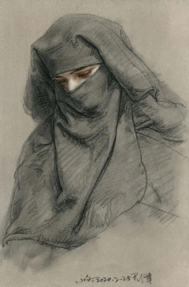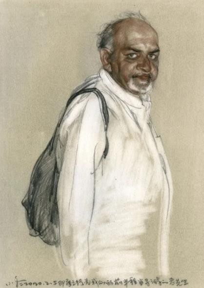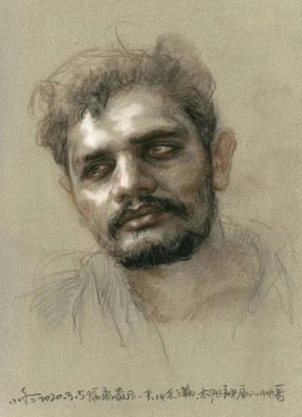 在新冠肆虐全球以前奇迹般完成了印度的考察之旅。印度旅行一路感叹,古迹朴厚入画,人物更是生动异常,特征千差万别,肤色白棕黄黑,造型雕塑般立体,颜色彩虹般绚丽,真是一个适合画画的“人种博物馆”,直看的我手痒。可叹此次旅行的主要目是为了考察印度古代美术遗迹。旅途奔波,实在无暇停留画画,匆忙中只留下用牺牲午饭时间得来的速写十余幅。从印度回来以后,在家主动隔离观察了 14 天。一些难忘的印度人特征在脑子里挥之不去。就用随手抓拍的图片当资料,每天画一画日课素描。这批特殊的作品成了抗击疫情期间的纪念。