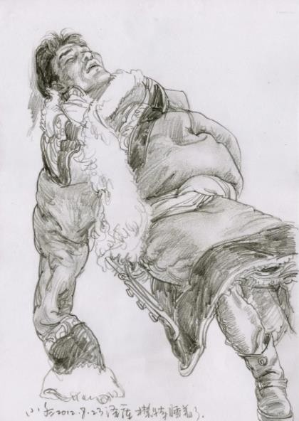近十年时间,先后有二十余次与吴长江老师和李晓林老师结伴同行,写生青海泽库,写生新疆塔县。吴老师曾经是我学生时代通过出版物学习临摹的老师,现在成了最敬爱的写生画友。李晓林是国内最优秀的素描大家, 与高手一同画画最有挑战,激发了自己的技艺潜能。