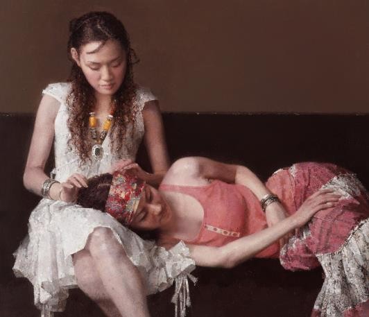 在作画的过程中聚焦于自身的内心感受,借题抒发心灵,画我所见之真实、体悟之真实,而非现实之真实,以此激发现实中人的想象力,达成他者实现自我领悟的精神愉悦。在我的绘画视野中,除却看见,更多的是意识层面所洞悉到的现实背后的真诚。每一个行走的生命个体都给予了我们一份真诚的感动,甚或一缕舒展的阳光、一片清新的空气,即便是几丝沉闷的呼吸,也会带着几许真诚的表达。当写实的或夹杂着变形夸张的绘画语言呈现于画面时,笔与色的交融不仅直接触及我的内心,同时也使我实实在在的享受到画面中所透露出的舒展畅然的快感。心融于此,亦醉于此。