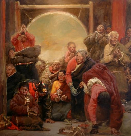 艺术从来都是精神的载体,也是我们审视和净化自己的归属,在喧嚣之后的文化废墟上技艺是我们的救赎。技艺哪有新旧只有好坏。我好奇于十七世纪西方油画大师作品的神奇,油画在那个时代获得了无上的尊严。相信我们这一辈中国油画家有可能、有空间接近那样的神秘与尊贵。我猜想和实验着400年前的语言方式,表达对眼前生命和事物的无限关爱与欣喜。对于我热爱又熟悉的西藏题材,我仍然是通过他者表现自己,画家终究都是在画自己。古老的西藏是和谐于自然的,我感动于眼前生命的古老形态,也感慨于西藏传统生活方式被现代文明异化的过程。希望通过西藏传达出质朴宏大的直观感受和心灵感动。我最喜欢伦勃朗说的话:“画出万事万物的内在精神,是绘画最最重要的核心要点。”