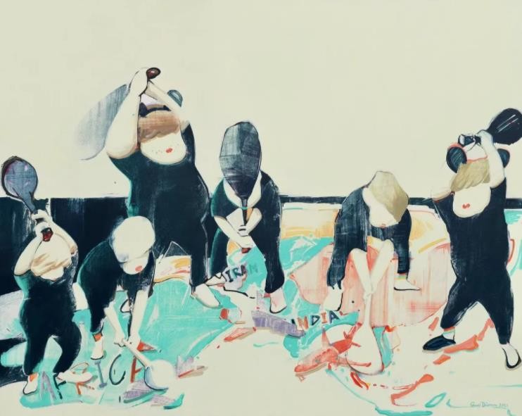 此次展览郭典继续以轻松的视角,呈现社会中各类场景中人的“表演”,而构成一出出“演出”作品。