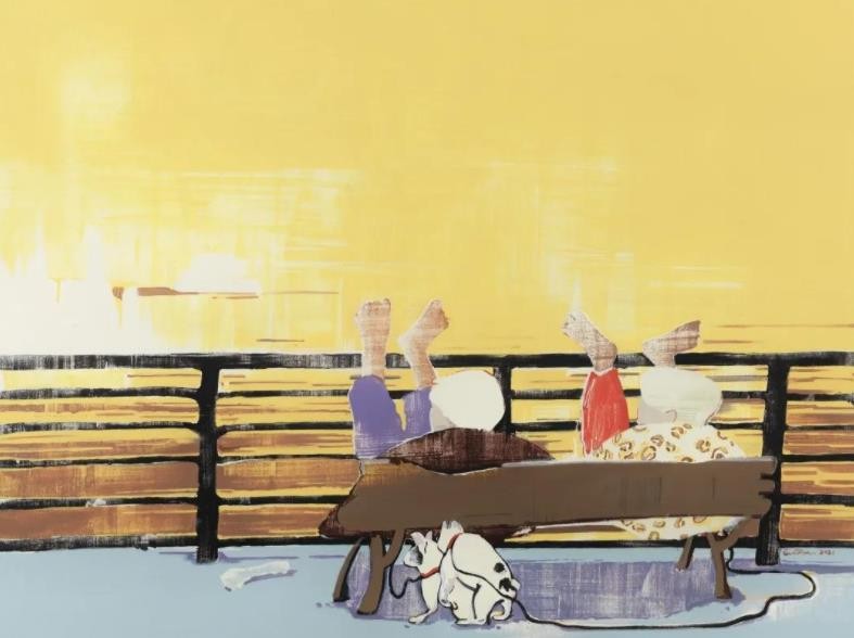 常往返于美国与中国两地的生活,让他对生活中发生的冲突现象更为敏感。各行各业的朋友,因职业不同呈现出的不同状态,成了艺术家观察他们对事物不同理解的途径。作品中简约块面的处理,是刻意简化观者对作品在视觉上的理解难度,呈现出所看即所得的视觉逻辑。