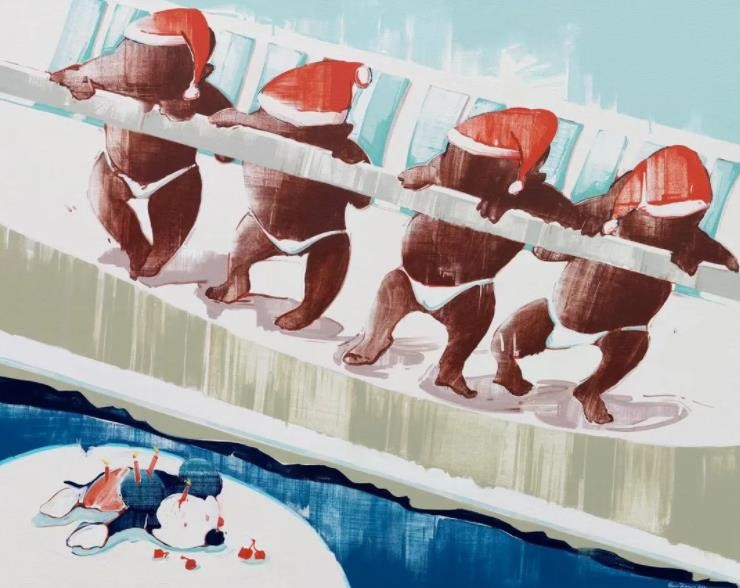 每件作品之间不紧密的联系,凸显出场景与场景之间的不和谐,以此放大人类社会在不同欲望与利益驱动下所呈现出的荒诞。由此让你带着艺术家的视角,旁观各类人生活的瞬间,去体会艺术家视角中所观察到的冲突与荒诞,而此得到微微一笑,还是讽刺观感,抑或是对什么是正常社会状态的思考,皆是观者自身在看“演出“后的反应。而你又将得到什么样的反应呢?期待一起到八大画廊体会一番。