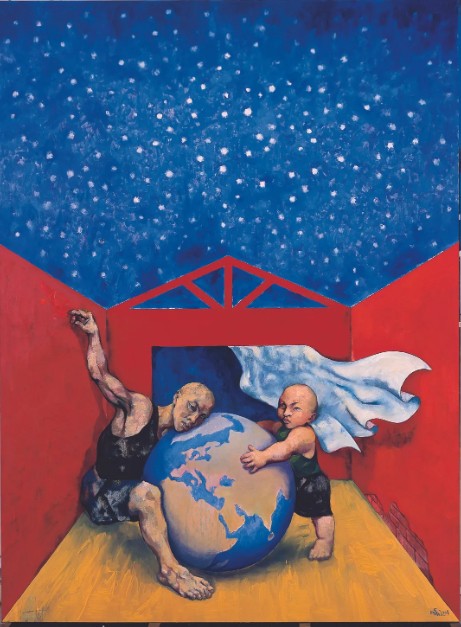 其间,充满着他对生命本能的关注和生命本质的关怀,凝聚在石磊视觉图像表达背后的则是他不确定的图像背后所彰显出的深深的人性。体现出石磊由对生命本能到生命本质持续性书写及图像背后所散发出的人性的光晕。从中不难发现,他由对个人个体的生命关怀转向对人类整体命运的关注,他由对局部问题、区域问题转向对系统问题和整体问题的关注。亦可体察到他由对生命问题到生态问题的转向,由本土地域问题转向全球化生存境遇下人类普世性生存这么一个恒远问题。