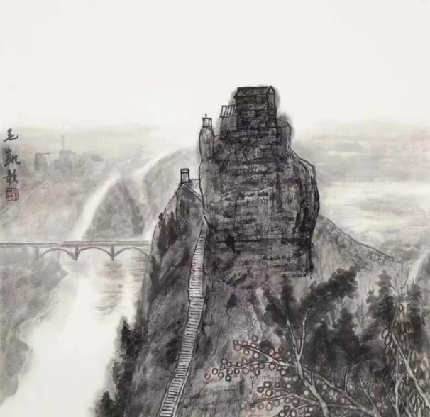 写生有诸义,词典说一指直接以实物或风景为对象进行描绘的作画方式;二指以写生手法所作的画;三指犹写照;四指写出生意,指把对象写活。毛凯歌的山水画大致走过了两个阶段,一个是临古,一个便是写生。临古是书画家的必修课,有时伴其一生。但不同阶段的临古,取法的途径方法不同,累积的技巧各别,以及认知的差异,便渐次形成不同书画家的审美向度差异。而写生的初步,往往是对物象的描摹,而进一步则是“外师造化,中得心源”,是“搜尽奇峰打草稿”,将笔墨形诸于胸中所拥有千山万水,是涵化化裁,是抽绎甄择,是遗貌取神,是择其善者而从之,这样积年累月,胸中丘壑便成笔底烟云。毛凯歌近几年,行走在秦岭深山密林,驻足于太行山间。抑或因了疫情的偶然,却在神木高原上踏行。神木乃神奇之地。此地于四五千年前就有人类聚居,其石峁遗址乃现存史前最大城址,曾古中国北方及黄河流域的文明中心。神木历史上一直是守卫中原、抗击外夷的边关前哨,素为“南卫关中,北屏河套,左扼晋阳之险,右持灵夏之冲”的塞上重地。神木又是能源胜地,富庶繁荣之地。将神木作为写生之地,本身就是神赐的灵感,天降的机缘。凯歌敏锐地选择了这块一般山水画家绝少踏足的地方作为写生基地,这本身就是有眼光有见识的。落实到他的画作,五十多件作品,所画不仅仅是山水,也是人文;不仅仅是描写自然,也是写出生意,把山水画活,是静穆的观照与飞跃的生命这艺术两元的合和统一。他的灵感,他的笔墨是从自然来的,却倾注了他内心的深沉情感,真诚而坚定。写生的根本义据便是写出生意。生而活,这是生命的美学原性。从这个意义上说,生活是中国画的魂魄,而绘画一旦介入生活,又会让生活更其绚烂,更其光彩体面。即是说,艺术也赋予生活以审美的意义。这不只是艺术的魅力,更是文化的力量。生逢于时,也正是毛凯歌们大展宏才的时候。值此凯歌神木写生系列山水付梓展览之际,聊以小文记之,权作贺礼!是为序。(2021年8月3日于南太白山之竹林山庄)