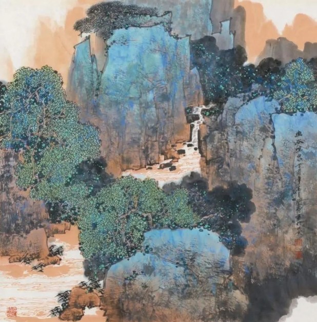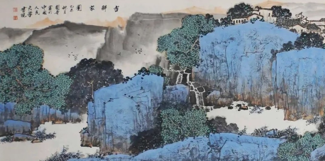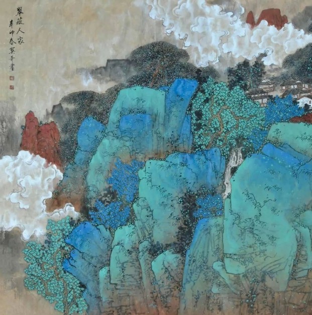 行吟在青山绿水间,关奇与时代同声相应,与国家同气相求。他饱蘸虔诚与热烈、磅礴与细腻、沉静与奔放、空灵与多变和极富张力的笔墨,将古风遗韵、现代意识巧妙融合,强调写神通境、追求意蕴神韵并存,令笔情、墨韵、色泽统一而和谐。一幅幅立意深远、造景幽邃、细节丰富、可居可游的青绿山水,带着关奇的款款深情,走向全国,拥抱世界。