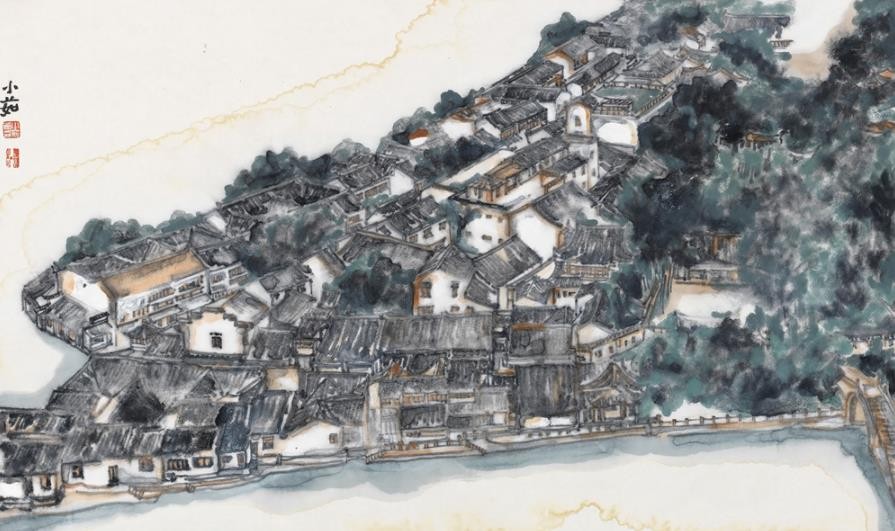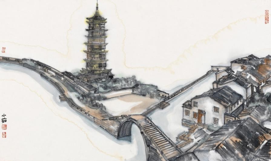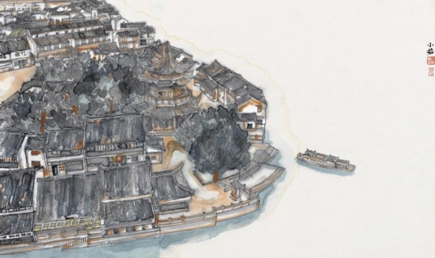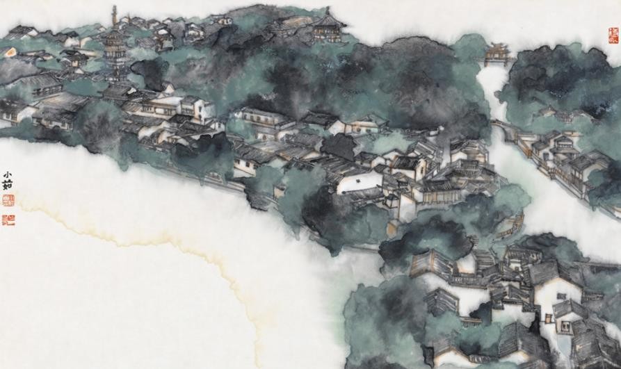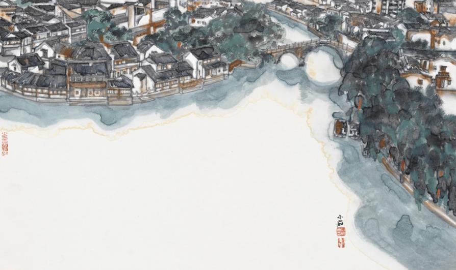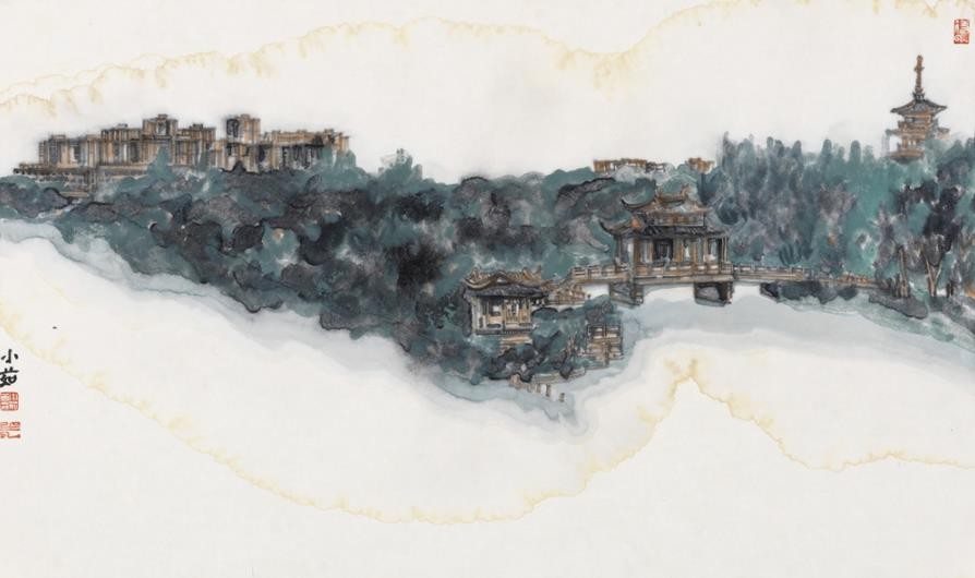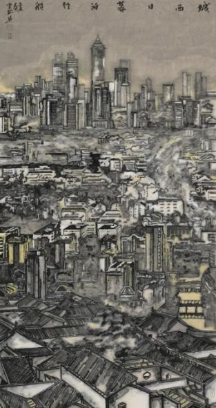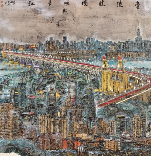 贾茹是一位当今苏州画坛不可多得的才华横溢的年轻女画家。在刚刚开展的“百年华彩——2021·中国百家金陵画展(中国画)”上,她那幅以《金陵胜境映长江》命名之作,给予了她圆梦的机会。她的作品用墨迹的层层叠加技法、线条色彩和光线特殊的聚合,突出画面冷暖与明暗的对比。她的作品强化了中国画技法中厚重笔墨和积墨表现技法对于历史沉淀感和现实厚重感的把控,由此荣获了最高奖“典藏作品”的殊荣。这一切的一切,恰好是对她长期以来艺术探索心路历程的最好奖赏与肯定。
