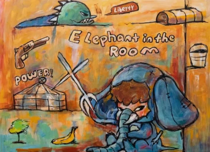 本次展览以“房间里的大象”(Elephant in the room)为主题,共有Lang创作的近50件架上绘画和雕塑作品亮相,展示了 Lang 对当下现实的创作思考。期待您的到来,寻找房间里的大象。
