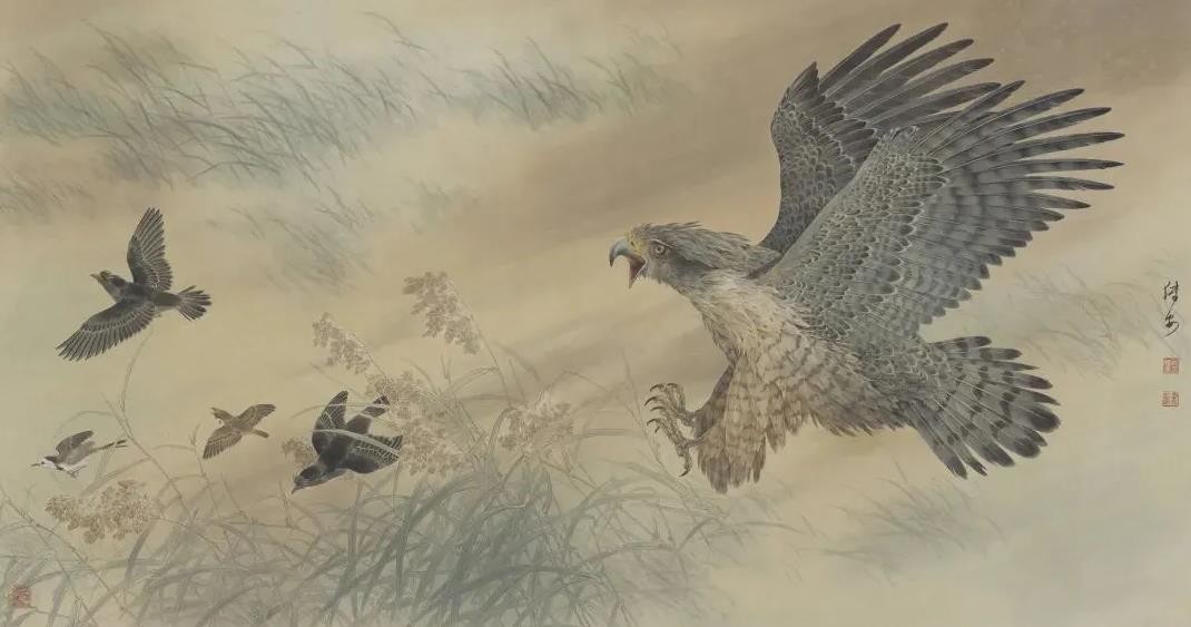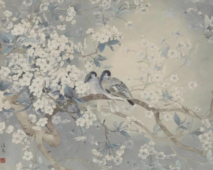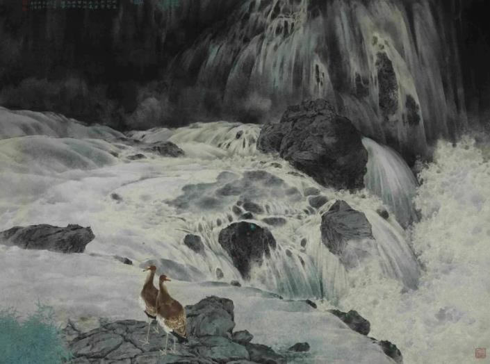 基于这样的艺术观念,他努力开拓一条具有时代特色的工笔花鸟画新道路,从取法自然入手,注重主体物象与生存环境之间的关联:以泼彩背景取代传统工笔花鸟画的背景留白;引入光的视角来丰富画面色彩与层次;将花鸟置于更宏阔的山水当中,增强画面的情景感。经二十余年的求索,确立了属于自己的花鸟画风格。