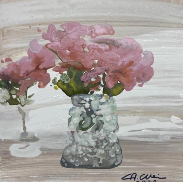 面对纷繁嘈杂的世界,任何有着卓越感受力的艺术家所表现出来的“物”必然是超越一般感知、超然于现实的作品,如此,我们的心灵才能在纷乱的现实背后有一处栖息的精神家园。世间万物都有其自在自为的美感,此种美感或许不产生崇高感, 但它除却世间纷争,纤尘不染,净化心灵;它源于我们的生活空间,却与我们保持距离,经过提炼概括升华为纯粹的视觉语言。 也正是基于此,我注重绘画的技术性,试图运用玄妙的语言扰乱人们惯常的视觉逻辑,让观者在二维空间里体验形态与材料本身的纯粹,从中获得静观的愉悦。我的作品,既保存着传统绘画的影像,又留有现代意识中模糊的逻辑,外在的清晰和内在的模糊并存,宁静与节奏并存,也许在这处精神家园里,你能够体会到一种久违的清新气息。