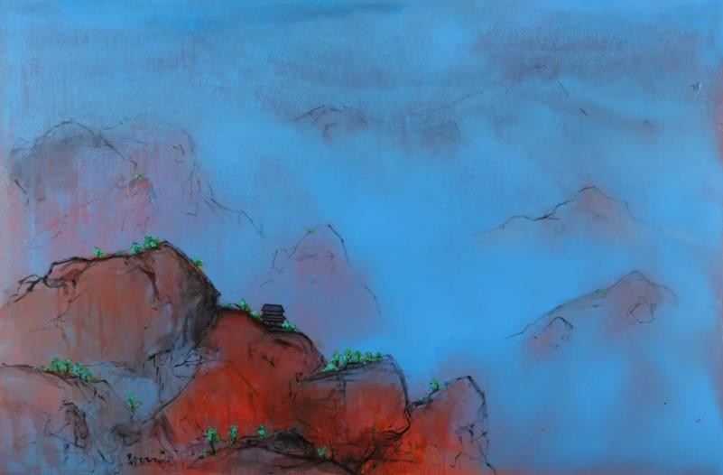 郑在东在近年创作过一批水墨作品,在形式和审美上与倪瓚最为亲近:简静、空灵、辽远,画上的题诗也从稚拙中透出元人特有的雅致。他笔下的米家云山,如江南的湖山,烟靄迷离。即便描绘的可以触摸的古代器物,装饰色彩甚重,也令人想起明代吴门文人的雅集。如果说十多年前郑在东的作品曾富有冷峻的哲思,他的近作则更多了一种温馨的感悟,精致、细腻、感性,在闲适乃至慵懒日常生活中,体悟著生存的方式和意义。