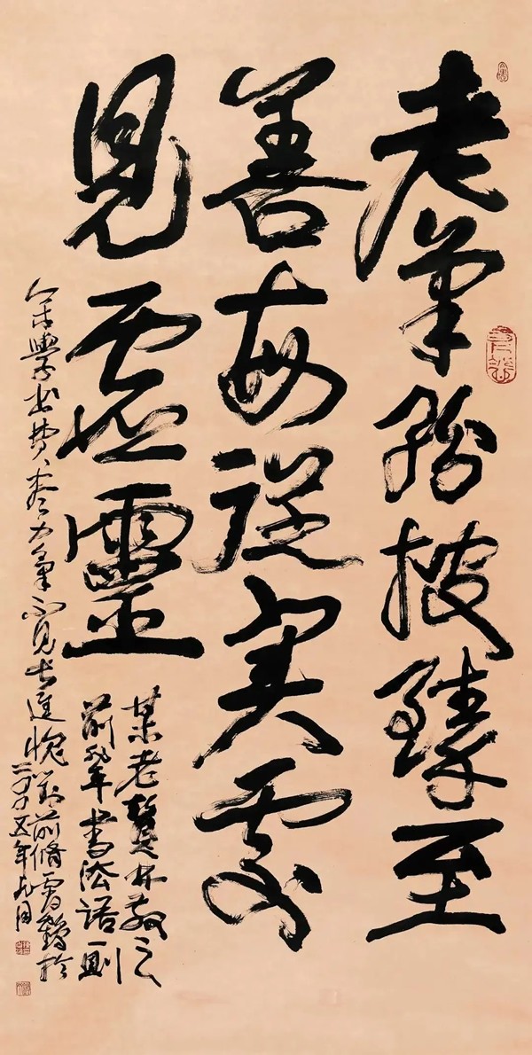 练老于书画、理论及鉴藏,着力深涉猎广,既深爱深汲之,且能出入其中,悠然自得。书法以草书成就最高,下笔落拓不羁,消息多方,时出妙品。其余诸体,亦取法非俗,风骨特立。偶涉丹青,虽是笔墨自娱,但从金石气息出入,复以草并篆意写出,落落大方。