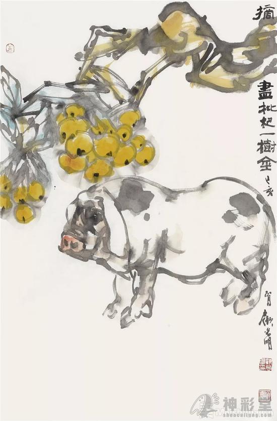 五福者,今花枝艳艳,深情自许,以涵古蕴今之襟抱,挥洒心性,以清风旷怀之逍遥,寄情繁华。春华秋实,可喜可贺!