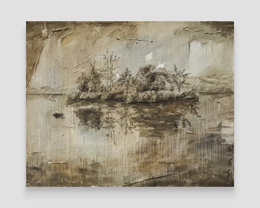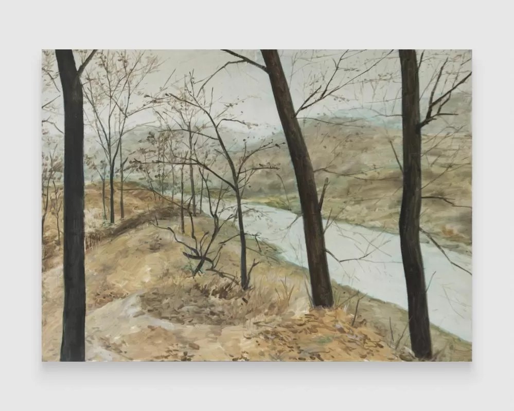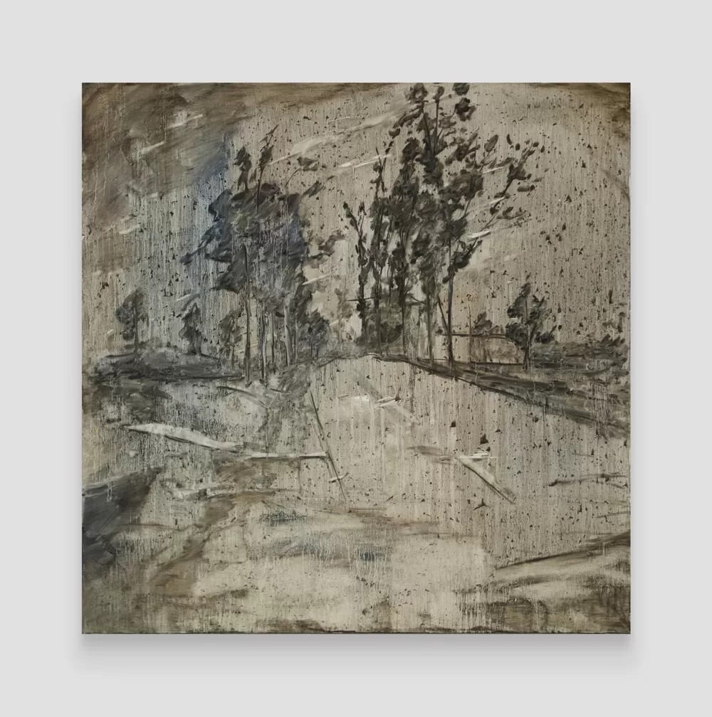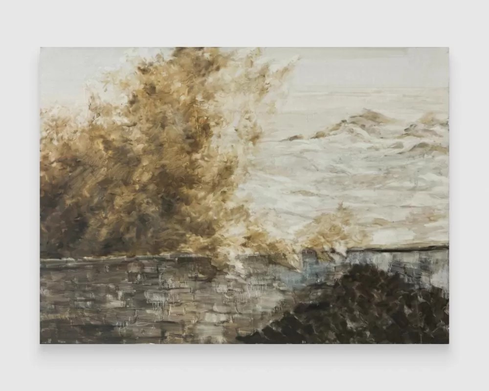 周子曦的风景绘画,常常带有暗示性和隐喻。这些图像通常来自中国境内极为普通、易被忽略的景观。风景中经常出现的水,成为具有开放性和多指向的意象:水代表了时间、历史,是浪潮和运动,也是无数普通的民众,暗流涌动的思绪和情感。它同时指向灾难和抗争,冲击和湮没,指向绵绵不绝的暗潮,也指向无尽无解的围困。风景中的植物、山峦、土丘,象征了卑微、却又充满生命力的顽强、隐忍,令画面呈现出超越风景的深邃。