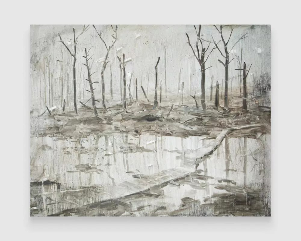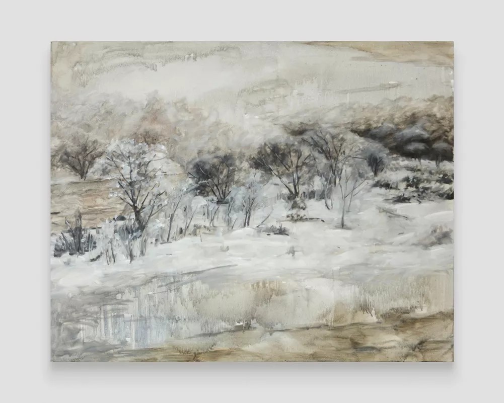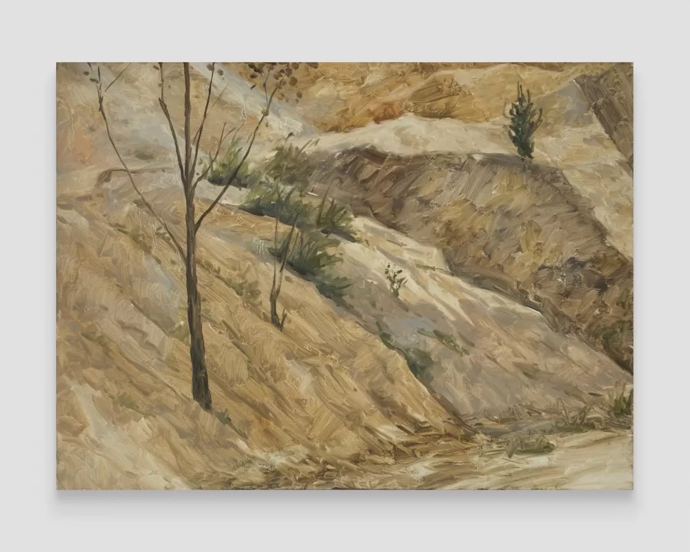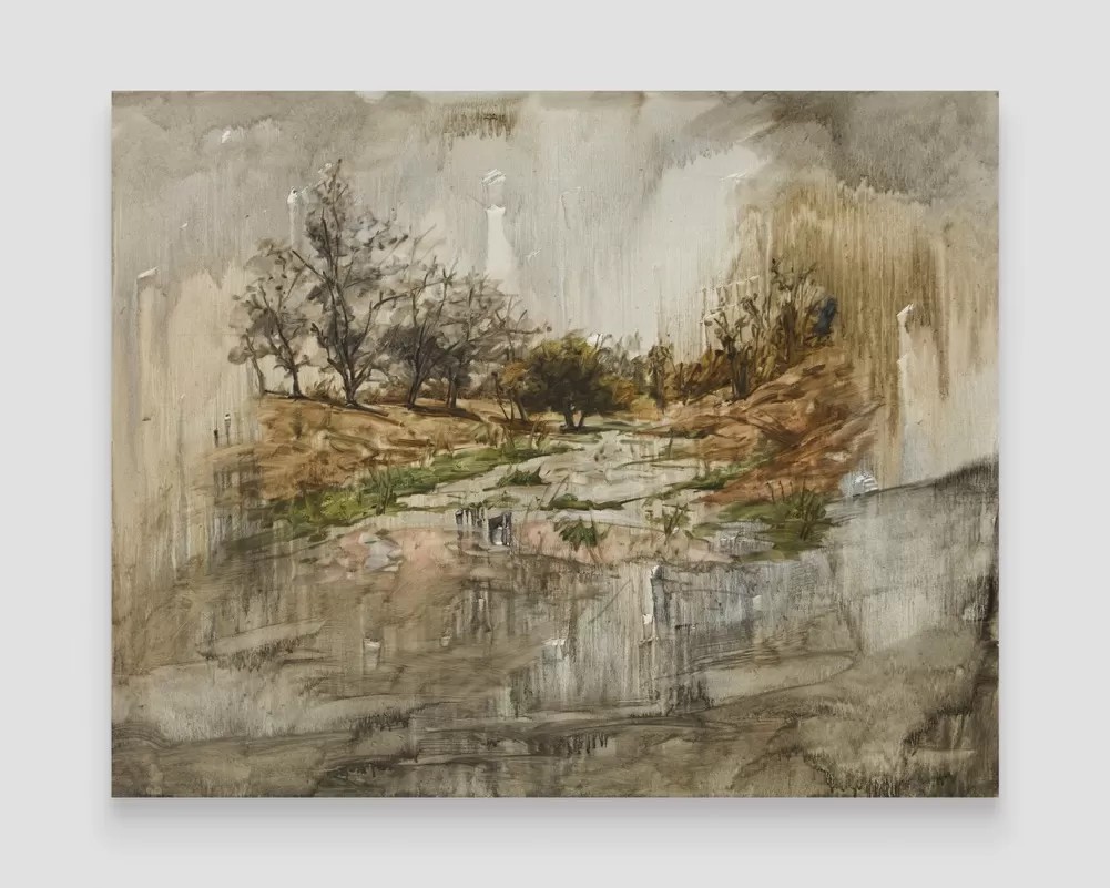 周子曦的风景绘画,常常带有暗示性和隐喻。这些图像通常来自中国境内极为普通、易被忽略的景观。风景中经常出现的水,成为具有开放性和多指向的意象:水代表了时间、历史,是浪潮和运动,也是无数普通的民众,暗流涌动的思绪和情感。它同时指向灾难和抗争,冲击和湮没,指向绵绵不绝的暗潮,也指向无尽无解的围困。风景中的植物、山峦、土丘,象征了卑微、却又充满生命力的顽强、隐忍,令画面呈现出超越风景的深邃。