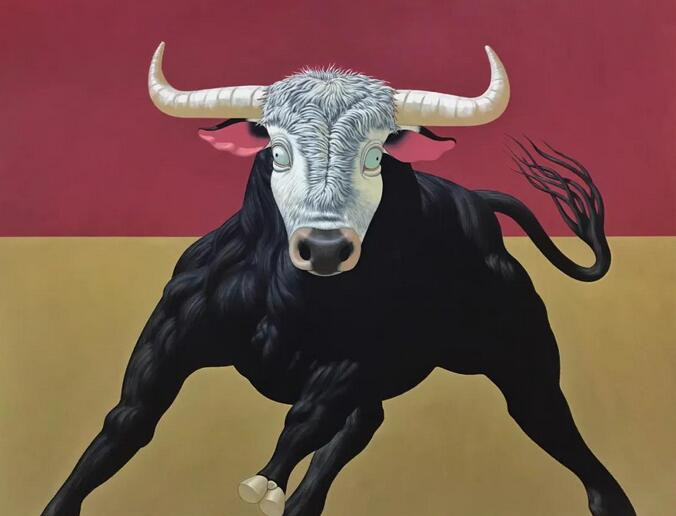 邓新黎的作品中,有“气”,一是“灵气”,是他的造物力,想象力,二是“生动之气”,就是他创造出来的东西是活的,所以他的作品是“极像,而非像”。邓新黎画笔下很多动物并不是来自于自然,是自己创造的动物,包括稀奇古怪的鱼、凤凰,即便是自然之物也是他凭空得来,不是画照片。极像,是他的写实力,创造力,给观众一个明确的“像”,让人信以为真。但它又不“是”,不是真实的存在,是虚空的凝结,莫信眼见,从心而得。邓新黎从“神仙眷”到“黑山”到这一次展览的作品,都是由虚得实,只是这次是藏得深了。