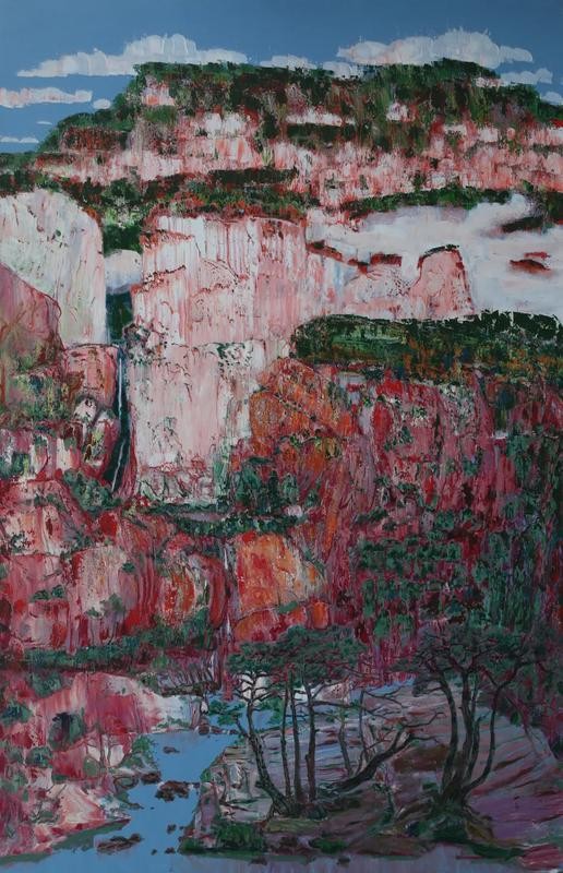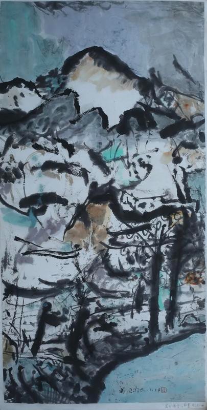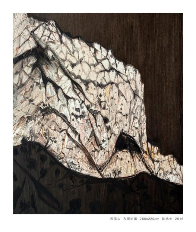 陈永生的创作深植嵩山。他以嵩山为精神母体,与山石云溪朝夕对话,将飞蛾扑火般的情感投入笔墨。他的画面厚重而浪漫,笔下岩壑林木仿佛具有灵性,在朴素的雕塑感中构筑出一个万物有灵的精神世界。