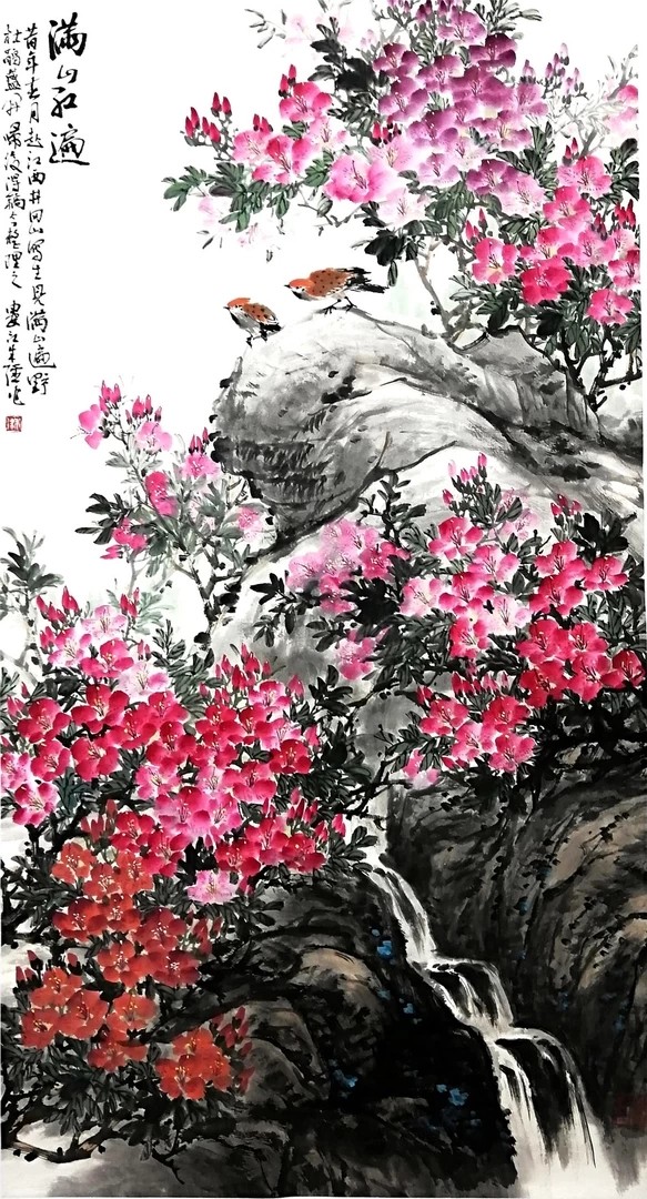 本次画展,我们从参加过宝龙艺博会的全国200多名艺术家中,遴选出七省市14位优秀书画家的128幅精品力作共同展出。作品画种多样,技法各异,可谓“青竹丹枫 掇菁撷华”。其中的锦绣河山、鸟语花香、人生感悟、乡土民情等题材作品,在这些艺术家的笔下变得美轮美奂、流光溢彩。他们传承了国画的绘画技巧,取法乎上,用笔墨抒发了对祖国和人民的热爱;他们坚持不忘本来、吸收外来、面向未来,在继承中转化,在学习中超越,创作了能够体现中华文化精髓、反映中国人审美追求、传播当代中国价值观念、又符合世界进步潮流的优秀作品,让国画和书法以鲜明的中国特色、中国风格、中国气派屹立于世。