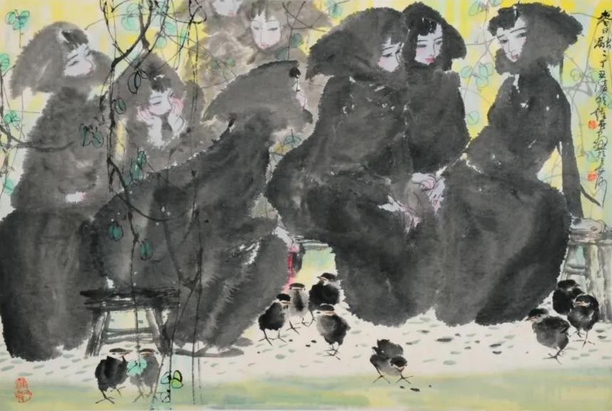 钟增亚先生是新中国成立后成长起来的成就卓越的艺术家。他始终坚持社会生活是文艺的唯一源泉,他的作品充满了浓郁的生活气息。他的用大写意没骨手法表现女性形象的“黑衣女”系列,就源自他下乡深入生活时对广东、福建农村女性的长期观察;他的《打工妹》是他路过长沙六堆子劳务市场,看到来自农村寻找工作的姑娘,内心有感而作;他的少数民族系列如“苗家女”“侗家女”,皆源自他在湘西地区采风时对湘西女性的所见所思。钟增亚先生说过,要画好一幅人物画,得储备一个连甚至一个营的人物形象。他走到哪里就带着速写本画到哪里。朱训德先生回忆,有次上课他要钟增亚先生的儿子钟岚带点他父亲的速写本来分享,结果第二天钟岚背了十几本速写本过来。2002年3月,为创作《三峡史诗》,他在三峡采风写生时不顾病体,风餐露宿,坚持画了大量速写。深入生活、捕捉生活形象意趣伴随了他的整个艺术生涯。