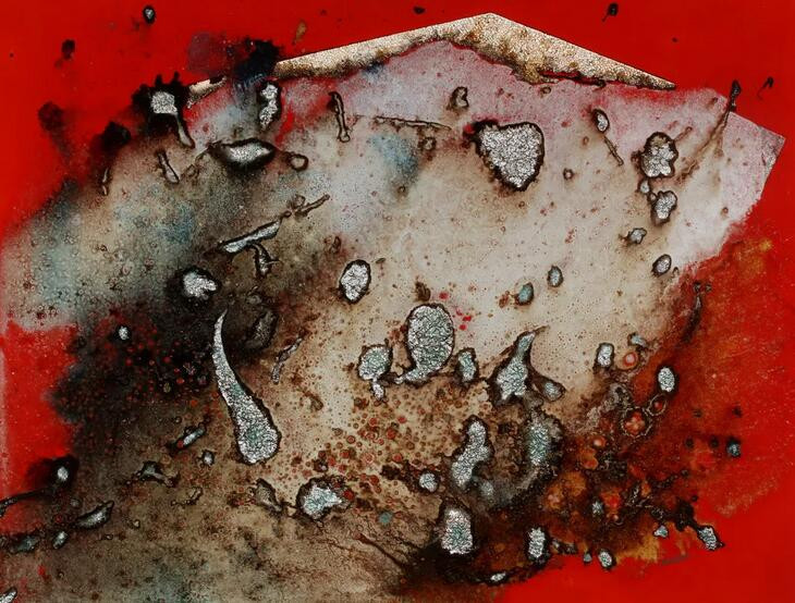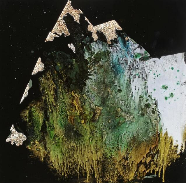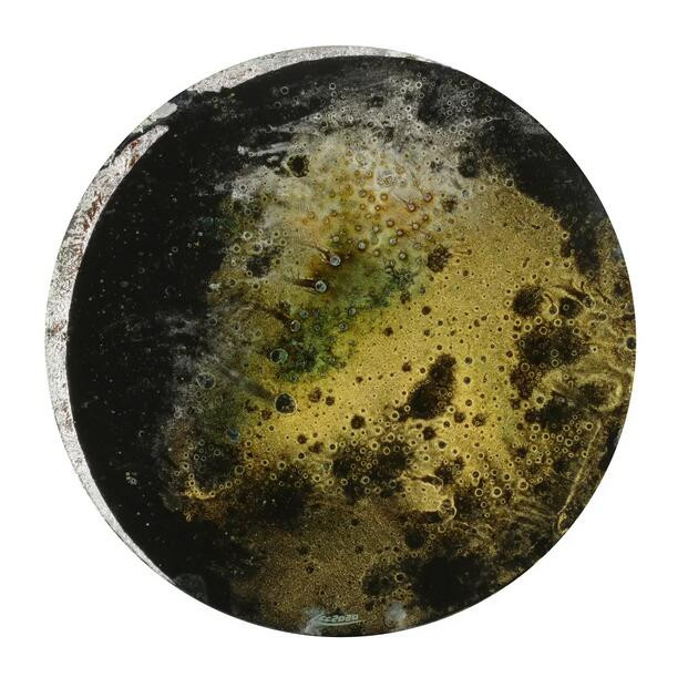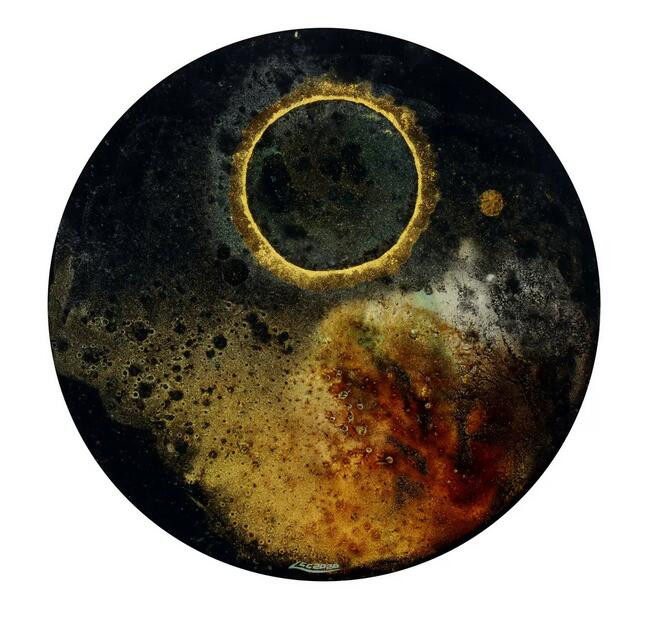 浩淼的星空,神秘的宇宙,周而复始的生命和永恒的爱……让人神往之余又生发出无尽的哲学思考。作品是艺术家心情性智的物化。材料作为一种表达作品所需的载体,只是通向思想的中介。我一直坚持主观的模糊画种甚至艺术种类之间的边界,只为获得更大的自由和可能。无所谓界限和范围,也就无所谓限制,一切都是因为需要和适合。中国是世界上产漆和用漆最多的国家之一。漆艺在中国有7000多年历史,漆,是中国传统媒介。这么多年来,我一直在以传统漆为材质主体表达现代艺术观念,在传统与现代之间寻找契合点,激活传统漆画技法演绎现代思想,在传统与现代两极之间实践自己的东方美学,流连忘返。