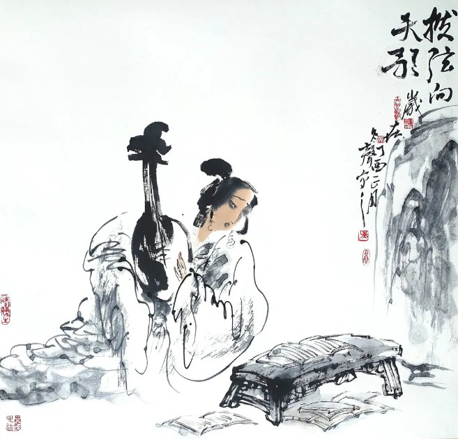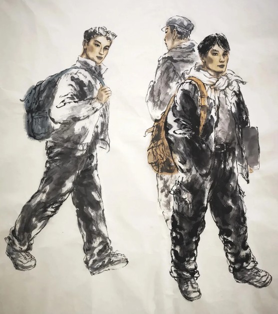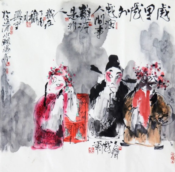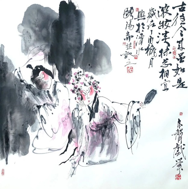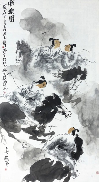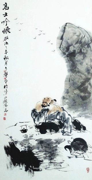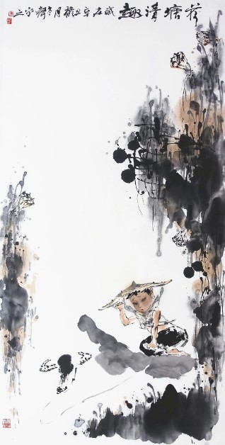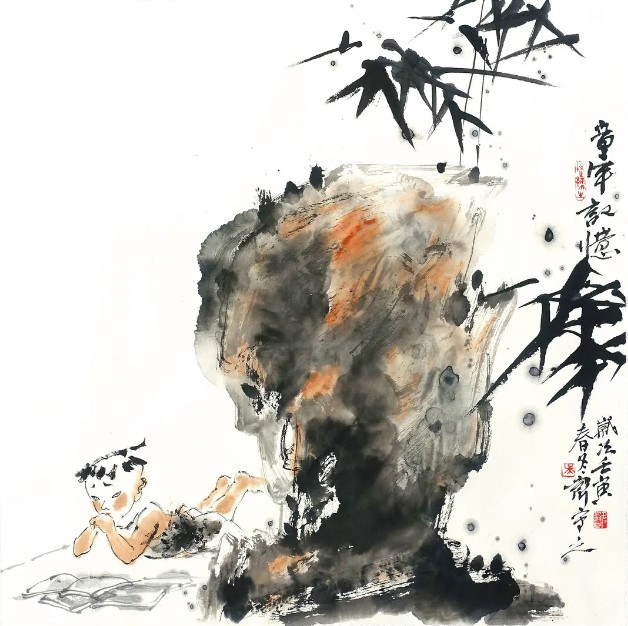 冬声在多年的中国画创作与中国画教学中始终一以贯之矢志于中国文化的学习、继承、研究、创造和体悟,冬声坚信这与自己心性与人生是浑然一体的,冬声的艺术语言和人文理想正是在这样境界里艰辛快乐耕耘着,传承开拓生发着,渐自形成了冬声中国画以乡愁为体的笔墨意味,形成了线与沒骨同构的温馨笔墨,形成了江南之意朴拙清雅的画风,这言语像是人与自然相知交谈。冬声画今人或画古人领悟着人与自然的澄明相遇,就若赤子在乡土的深深呼吸,这是冬声的心性之音,像于常见之后的一种忽见,既温厚有觉又和畅真切。读冬声的画渐渐走近其言,其境所贮有诗意之中,从水墨人物至工笔人物透着朴素审美,造型意味和笔墨点化述说着一种冲淡滋味。乡土情怀的深层结构与冬声笔墨情感体现在造型形态的方正与单纯稚趣里,体现在笔墨浓淡的淳厚与清澈抒展中,体现在内心意象的自然与悠然的生命知觉中。冬声中国画于平凡生活体味真善之美,他与时代奋进精神同行,每一笔一墨所塑造的形象无不沉浸在物物相合,生生不息的归真理想中,冬声的一切笔,一切形,一切墨,一切境在天地人和相互渗透中,呈现了冬声中国画新语境的生命气象。