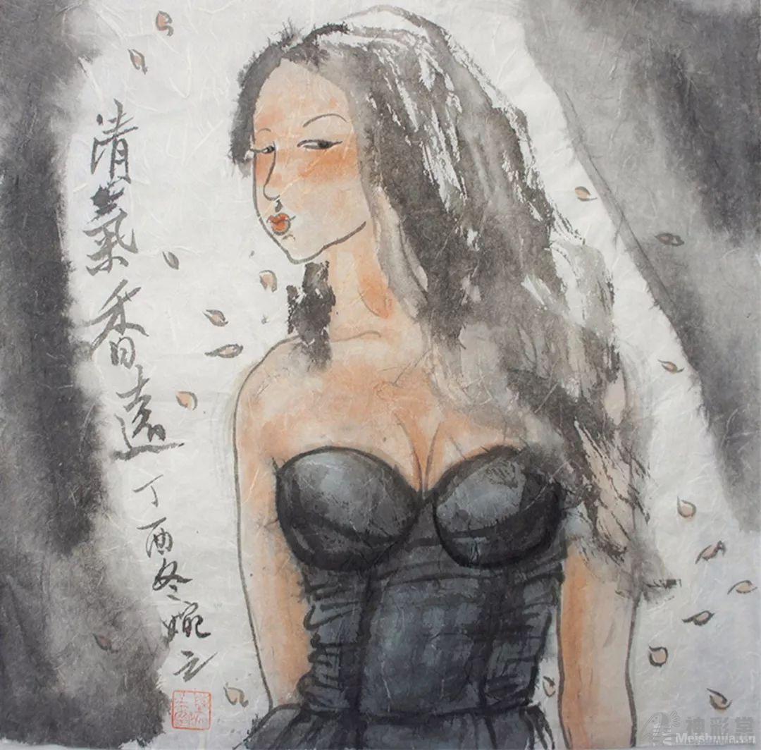 陈婉之是一位教师,曾是一群年轻女模的带队,这种有意无意的观察阅历,使她对年轻女性题材有独到的敏感,会捕捉别人感觉不到的某种风致情韵。她笔下有的现代女性,时有不经意间流露出来的一种别致。喜欢玩文的吟风弄月,使她偶弄花卉,也显风致洒脱。林语堂说过:“一个人能知道何所爱何所恶,便是尝到了知识的滋味。”一直玩文的经历,带给她笔下一种不疾不徐的从容空灵,使所画不见冗杂而气清,诚为可贵。当然从更长远来看,我希望她今后能更明本心。