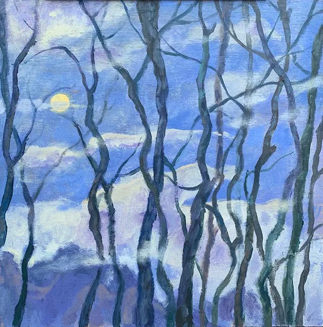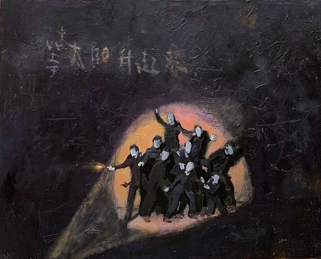《太阳照常升起》是徐浩洋的首次个展,题目来源于姜文的同名电影。姜文在电影中表达的是时代故事——“一代人来,一代人往,太阳照常升起。”虽然徐浩洋此次个展名字与影片相同,但是其中想要表达的,却有不同意味——尽管画面中的夜色荒诞离奇,充满迷幻色彩,但这一切在太阳升起之时都会尘埃落定,无论夜晚多么荒谬,太阳依旧会照常升起。在此次展览中,徐浩洋对太阳升起前的夜晚这一概念进行了具象解读,而不同尺幅的作品对此有不同的表达方式。在小尺幅作品中,画面通常是凝聚在夜晚的某一刻,让昏暗孤寂在夜晚沉淀得更加深邃。而在尺幅较大的作品中,一切离奇的事物在夜晚的画布上无言的涌出,由画面试图向更远的地方延伸,悄悄开出一朵怪诞的花。