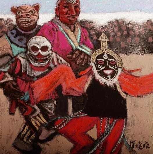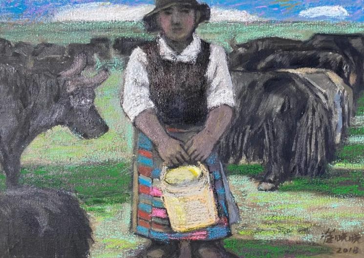 2012-2018年八次深入青藏高原藏区考察藏民族民俗文化,创作油画《吉祥西藏》、《藏戏》组画,石刻《雪域高原》系列;