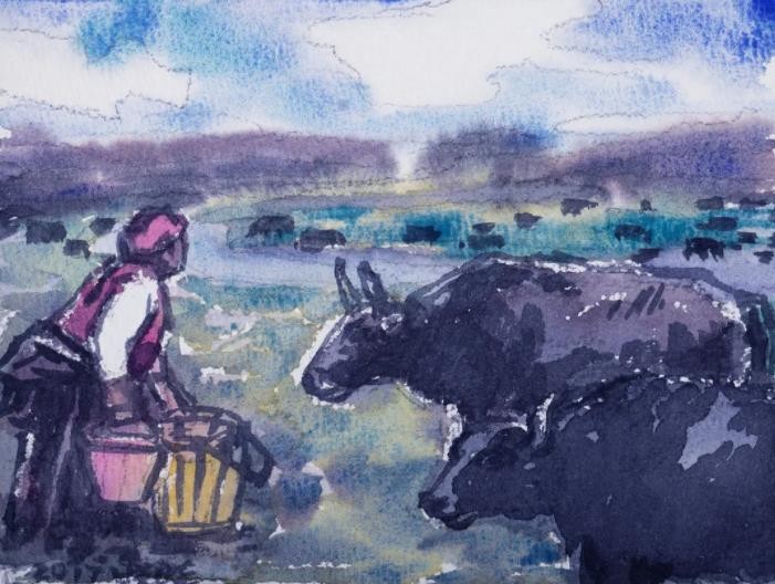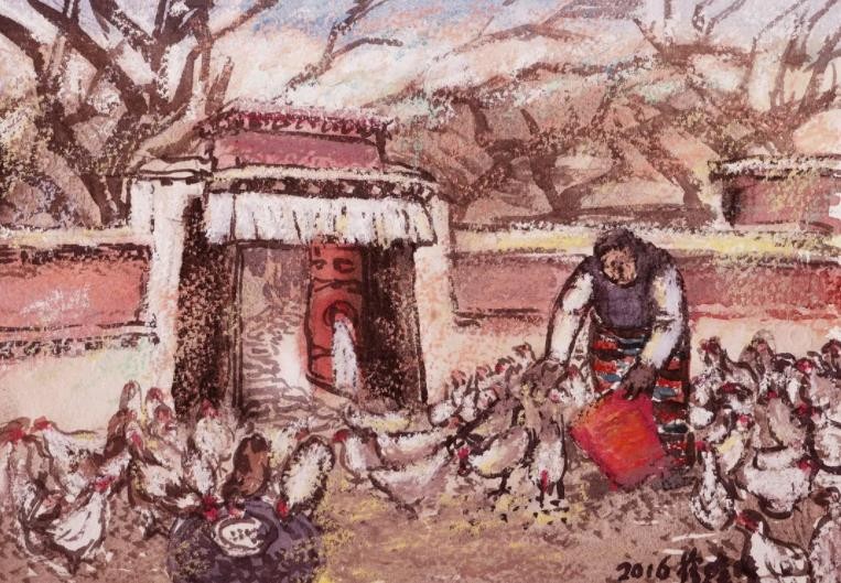 2004-2021年深入辽宁西部乡村写生考察,创作油画组画《乡村·乡民》;