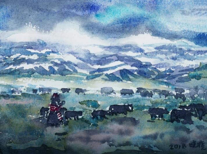 2018-2020年三次出发重走长征路写生考察,创作大型油画组画《伟大的长征》。