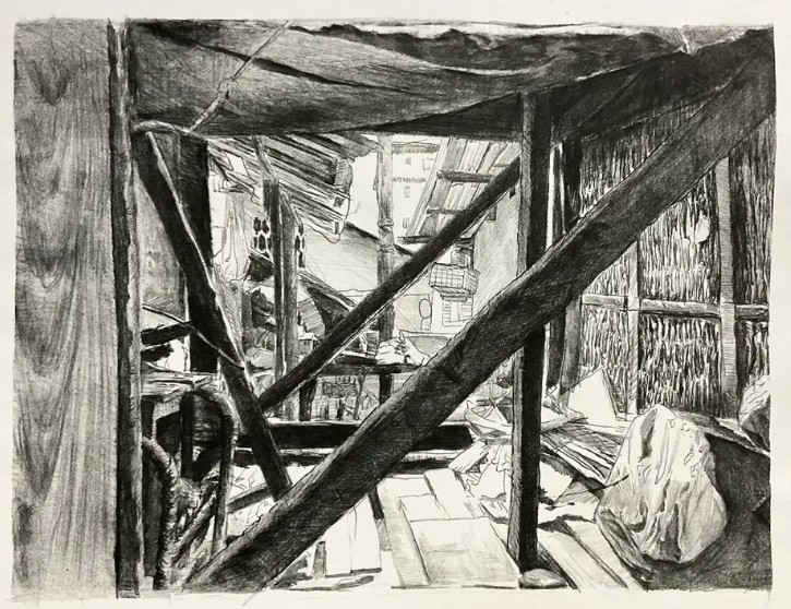 作为这次展览的参与者之一,我和我的同学们比起绘画美好的事物更关注的是如何通过绘画弥补生活与艺术的关系。长时间来,像我们这一代的青年接受的美术教育大多都深受着西方学院派艺术的影响。毋庸置疑的是学院派的教学可以夯实我们的基础,但文化体系的不同决定我们并不能一味地走前人走过的路,否则终将成为明日黄花。