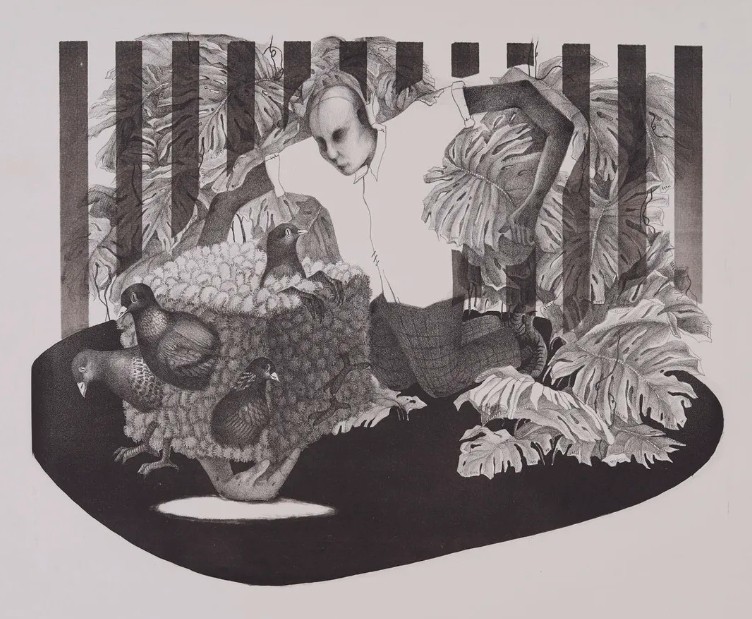 同学们的创作主题多从自己的生活体验出发,有的关注个人的内心情感,有的注重成长环境对自身的影响,有的从梦境意识与感知进行探索和表达。从作品的形态来看,他们从具象绘画出发,转向表现的、象征的、超现实的、抽象的,各种语言样式的实践拓展了学院版画的语言风格,呈现出较为丰富的创作面貌。对他们而言,重要的不是结果,而是过程中的经历和体悟。艺术本身就是“无用之用”,通过版画创作使人自身的能力得到提升,内心更加充实。在不断劳作和技术语言实践的过程中获得存在感,找到自我存在的价值和意义。这是一种获得幸福的能力的培养,也是良好的素质教育的体现。