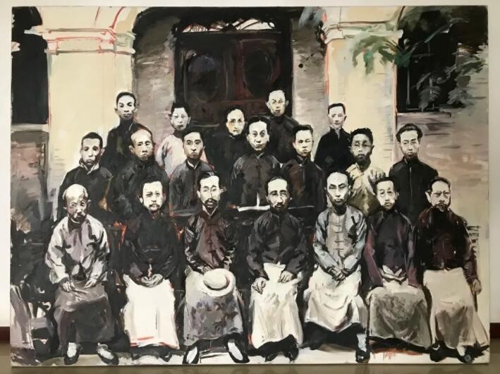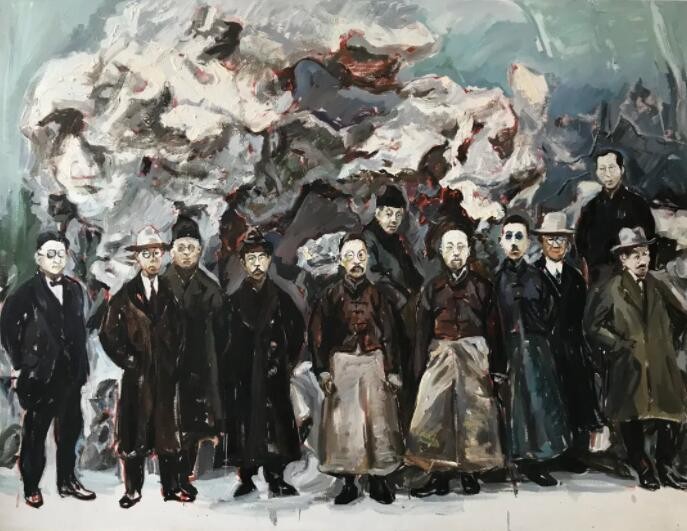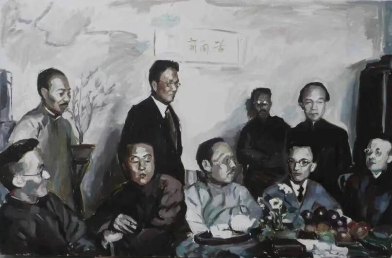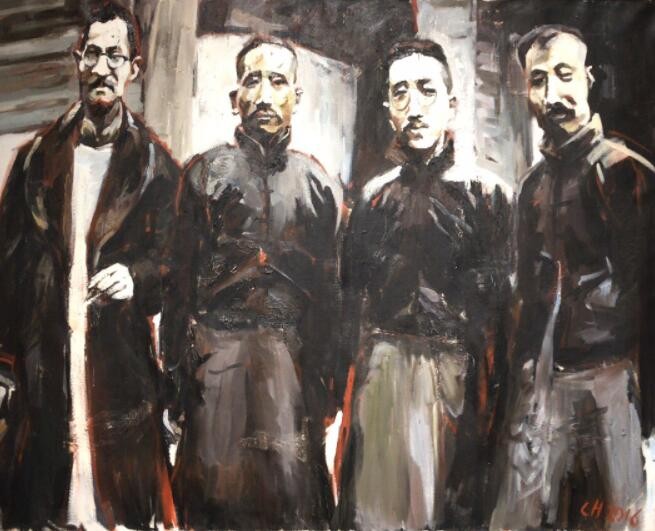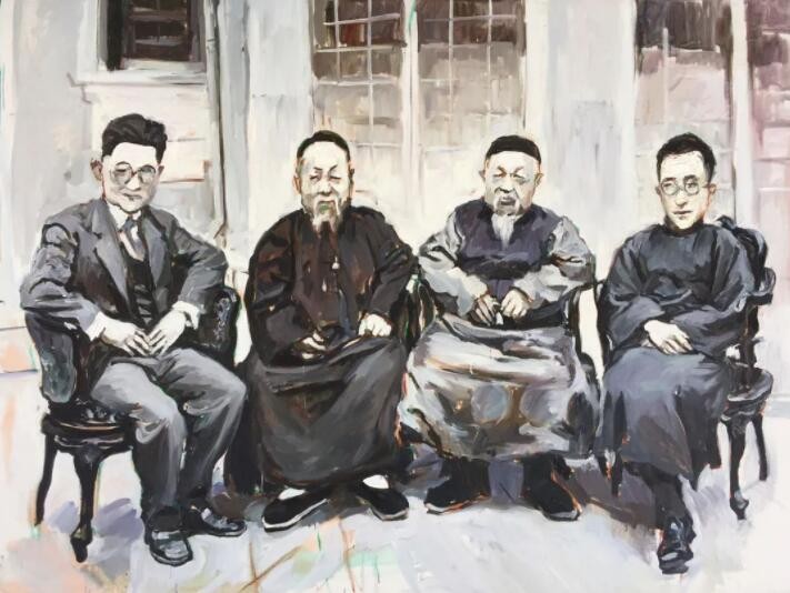 只要提到那些代表性人物,就会让百年后的我们萌生无穷的想象——蔡元培、王国维、陈独秀、李大钊、鲁迅、沈尹默、胡适、辜鸿铭……近年国内观众已经从影视、戏剧和文学作品中看到过今人对这些先贤形象的理解与想象。但以多幅绘画形式整体回顾不同组合的历史群贤,谌河“先生之风”群像创作则开风气之先。