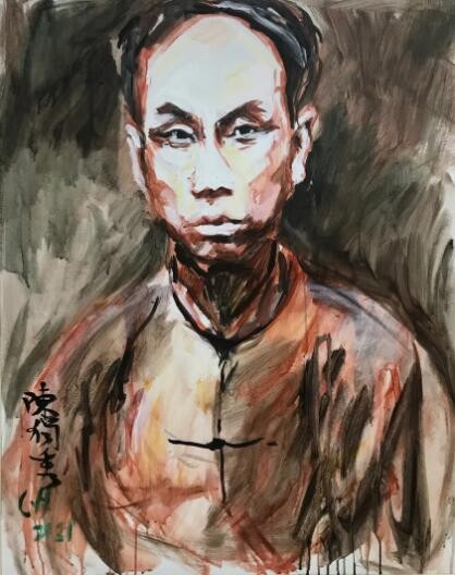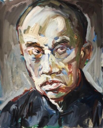 画家选择的艺术风格和绘画样式,既继承了传统书画的写意精神,从意、气、神的层面,仰观先贤个性气象;又利用了写实绘画再现历史形象的能量,使他们的形象可以捉摸,可以比较和想象,使他们宁静的组合构成“强烈的瞬间定型化”,从而构成具有独创因素的形式。近几年描绘“五四”文化人的绘画作品并不少见,但谌河的个性化手法,确实是对中国文人书画一贯气象的发展与继承,又与“五四”新文化运动的开拓精神一脉相承。在历史脚步不断前行的今天,由当年文化群体的后继者塑造百年前的先辈形象,使这组创作成为家族文化背景和一贯的艺术追求自然融合的果实。这种文化背景和伦理传承,给了谌河扎实的构思与创作基础,它绝非“戏说”,绝非“想当然”,绝非“脸谱化”……这使对那些先生多少有所了解的我们,在这组历史人物群像作品前,感受到艺术处理的认同与历史记忆的信赖。
