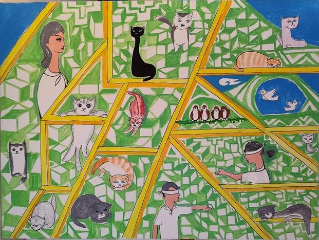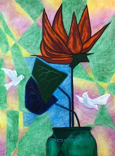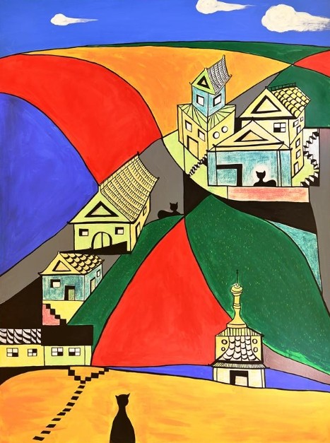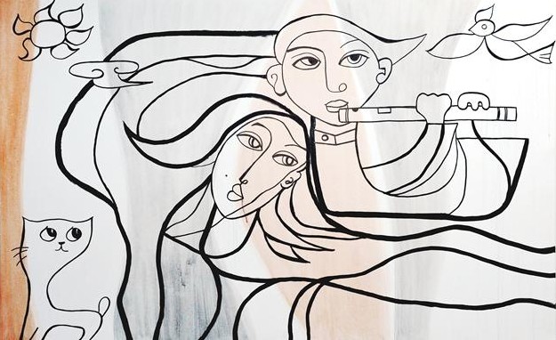 张郎郎先生的绘画作品色彩鲜艳斑斓,万变的造型直击心魄,具有文学语言转换的视觉冲击力。将文学表现力转化为感人的线条,色彩绚烂动人,构图充满张力,是他丰富厚重的人生体验,深沉的文化积淀,与人性光彩的呈现。