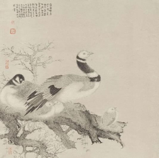从纵向上比较,宋人花鸟画严谨、精确,用笔实,设色厚,元代花鸟画淡雅而潇洒。明清大多是大写意,水墨淋漓。明之陈淳、徐渭,清之八大山人、扬州画派,清末海派,皆属大写意花鸟画一路。近现代花鸟画大多传吴昌硕、齐白石一派。万鸣的花鸟画和这一派完全不同。从横向上看,当代的花鸟画除了延续吴昌硕、齐白石系外,也有师法宋的,也有师法元的。但师宋明显的似宋,师元的明显的似元。而万鸣 “以文化宋元”,他先与宋元合,后与宋元离,是真正的师法宋元而化之,不同于古,不同于今,自成一家之法,在当今画坛独树一帜。