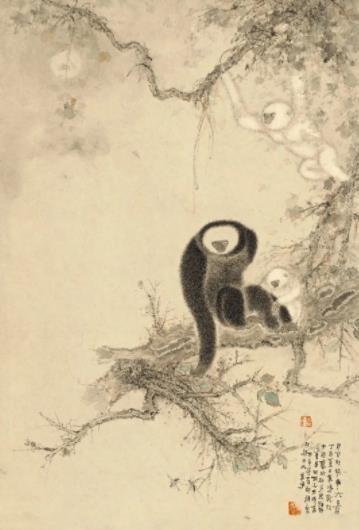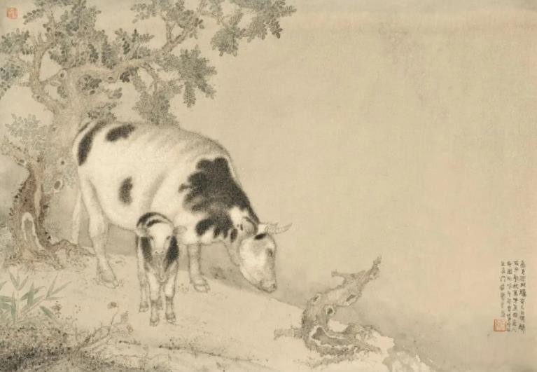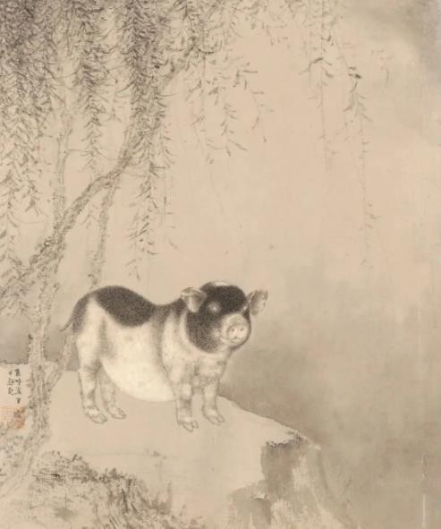 万鸣画花鸟、走兽、人物,尤喜画猪,我看到他画了几十幅猪图。万鸣画猪,一是把古人不画猪这个空白充实起来,二是他不忘本根。他生于农村,少时见到猪是常事,农家没有不养猪的,他对猪有特殊的感情。他画的猪也不同于齐白石、徐悲鸿等。他也是用元法化宋之法加之他自己的短戳笔法而画成,万鸣画的猪,不但画出猪之形状,猪之精神,更画出各种猪的特色和性情。这不仅是他的功力所致,也是他爱猪的精神所致。时人有曰:“齐白石的虾,徐悲鸿的马,黄胄的驴,李可染的牛,刘万鸣的猪。”所言据实而合情理也!