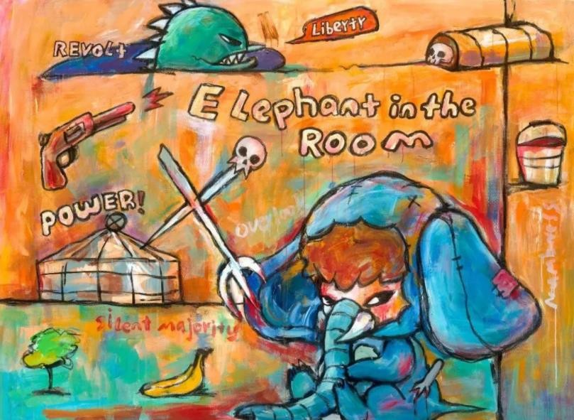图像体现在产生机制上的反叛性,是绘画语言的杂糅向学院派及精英化艺术语言的反叛。在世界经济体和互联网爆发的当下,不同形式的图像被快速地生产出来,并随着新型传播方式广泛地复制和繁衍,以超乎想象的频率充斥着我们的视觉空间,构成了我们具象化的当代生活情景。多语言的图像环境是新一代艺术家对传统绘画反叛的必然性,拼贴、挪用、变体、涂鸦、卡通、新媒介,他们用各自不同的方式,构建出一幅联合广泛文化圈层对抗严肃语言和叙事的新景象。