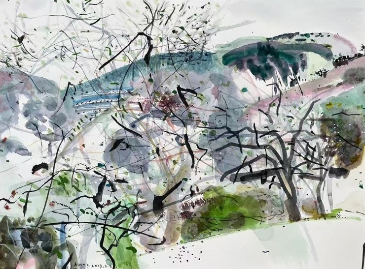 本次展览在油画与水彩不同媒介语言中各自展开。油画的厚重与层次感,使那些山脉、田野、村舍在色彩的叠加中显现出时间沉积的重量;水彩的透明与流动性,则如记忆中被阳光照拂的风,轻柔、朦胧,却不乏力量。这这两种媒介并非简单并置,既是对现实风物的凝视,也是对过往情感的再度召唤。