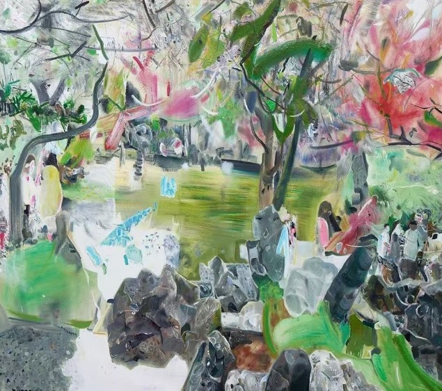 山水与建筑不只是自然景观,更是情感的回响;植物也并非纯粹的形象,而是记忆与渴望的象征。艺术家营造出一种近乎时间暂停的观看体验,使观者在面对画面时,不自觉地进入某种沉思或自省的状态。这种表达指向的,正是当代人在面对自然与自我时,所经历的那种细腻、复杂且无法被简化的心理过程。