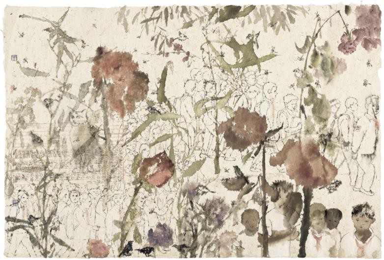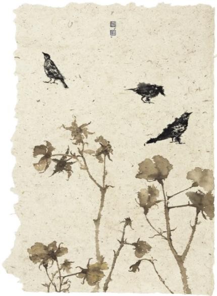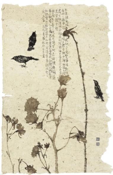 在罗敏较为早期的创作中,艺术家侧重于现实性的题材,注重主题,强调叙事,并且以具象性的语言为主。在近期的创作中,艺术家明显调整了自己的创作方向:从对外部现实的关照转向个人内心的情感表达,从强调主题性转向绘画行为的日常性,从具象的描述性语言转向书写性。以《花间集》《游春记》系列为代表,先前的现实主义题材被以花鸟、植物等为对象的主题所取代。在中国的绘画传统中,花鸟画不仅有完备的发展谱系,更积淀着东方的、古典时期的审美趣味。罗敏钟情于花鸟,在绘画中描绘梅、兰、竹、菊,不仅因为这些题材承载着东方化的自然意识,而且,还被赋予了浓郁的人文气息。
