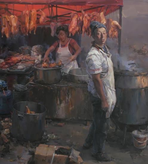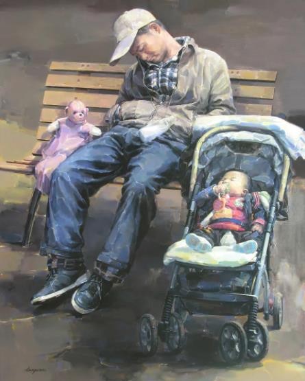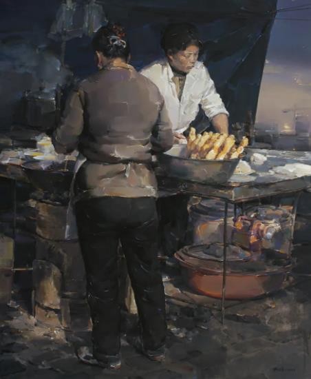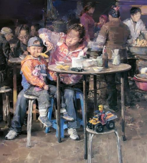《守望幸福》系列作品,以中国人的艺术视角来描绘当下中国社会发展的辉煌图景,诠释和表达普通百姓对幸福的精神守望,借人物形象外在表情、肢体语言、生活道具及活动场景,以画面构图的设计审美,对其进行主观重组、艺术再造及形象刻画,充分传达个人的艺术探索与审美追求,不断赋予作品极具个性化艺术语言特征,更从精神与文化的高度转化和创造中国油画的艺术审美意境。