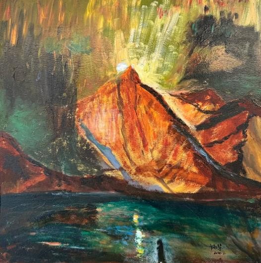 接下来的三年间,施慧先生又数次举办个展,突如其来的疫情似乎都没有让他放慢脚步。今年开春,我在丽江时接到他的电话,告知今年的个展定在八月,嘱我写几句。我忍不住再次劝他不要太辛苦,慢慢来。他低语道:我有紧迫感、快八十了……我竟一时无语。一个人,非富非贵,一路走来全凭自学,先后成为云南姚氏医学流派传人、作家协会会员、音乐家协会会员、油画学会会员等等,半生行医,出版多部医学专著。是的,他学艺几乎都是半路出道,看起来不科班,但仅凭他近七十岁开始学习油画,十载光阴,七次个人画展,三本个人画册,试问,这一记录有几位专业画家可与之比肩?我们可以讨论他艺术上的不足,但无论如何不能无视他一步步的艰辛和成就。