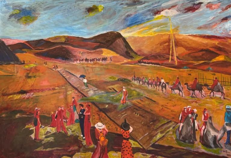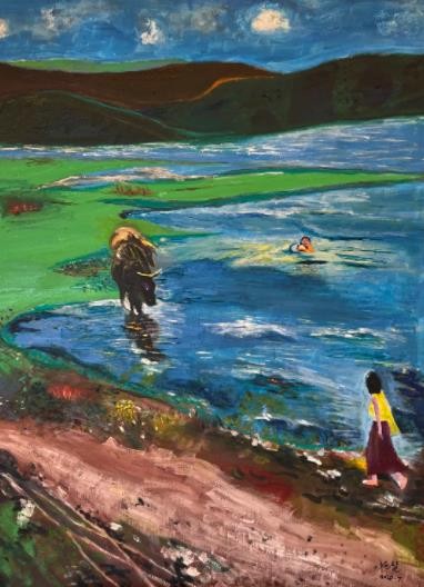 在这里,这位老人旺盛的创作精力和勇气,可以说很少有人不为所动。虽然从绘画专业角度来说他还有很多欠缺,但我以为对这个年纪的人来说很多所谓的专业要求已经不那么重要了,因为我们更看重的是他用绘画这种手段展现他生命的一种活力,并把这种活力传达给我们,这一点我以为尤为重要。这也让我们这些从事艺术专业的人反躬自问,我们的初心是什么?我们的目标在哪里?