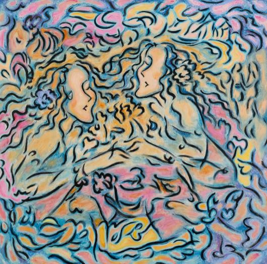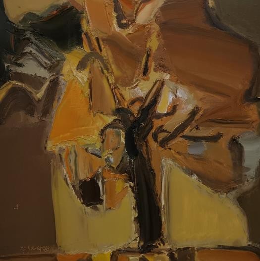 李学峰和文祯非在绘画语言的选择上有很多相似之处,他们均喜欢用大画刀来刮擦塑造画面,所不同的是,李学峰比较重视油画材料本身不断覆盖挤压后形成的参差色面和凸凹缝线,注重画面的厚重感和反复塑造后形成的稳定的色层以及肌理的结构,在周而复始的材料语言的厚层之下,寻求意象维度的多种可能。而文祯非更关注在其绘画中对具象形象辨识度的破除,他运用刮刀反复刮涂画面形成模糊与抽象的纹理质感,在此之上再次塑造具象的形象与内容,然后再次利用刮刀刮擦涂抹,使不同阶段画面中所塑造的具象形象层层叠叠隐藏在抽象的划痕之下,以此建立起其在具象与抽象之间所找寻的意境与意象的精神指向。叶向明的绘画与以上两位艺术家迥异,他在数十年的绘画中始终敏感于语言符号的生成和文化代码的序列编排,在深沉的理性建构中蕴藏激越的感性驱动,使其塑造的“文化符码”与其自身的情感经历以及当下的切身感受密切相关,在符号的能指与所指间,建构起一套自己的语言结构和表意方式,在斑斓的色彩与精炼的笔痕间,塑造出抽象与具象繁复叠压的密集结构。